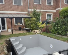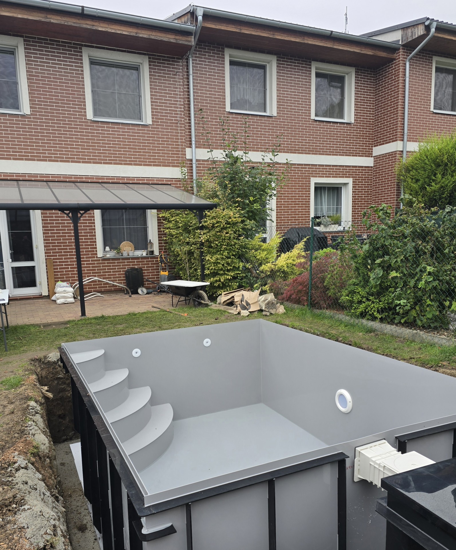 Zákazník si objednal bazén 4 x 3 x 1,2m šedý hranatý, ale neměl přístup z žádné strany pozemku.